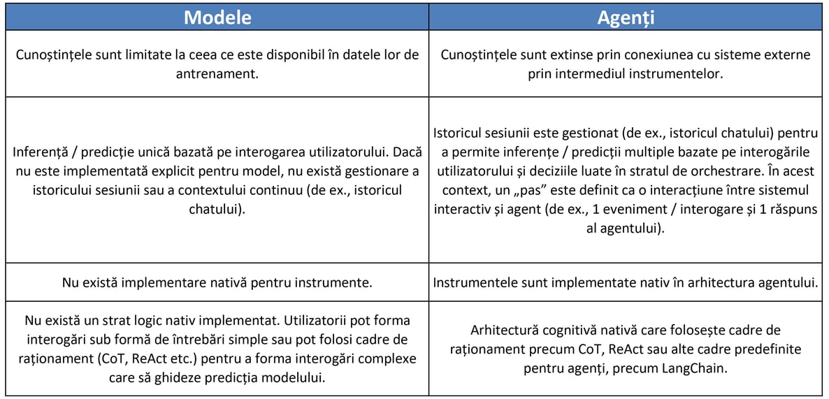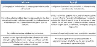 Pentru a înțelege mai clar diferența dintre agenți și modele, consultați următorul tabel: