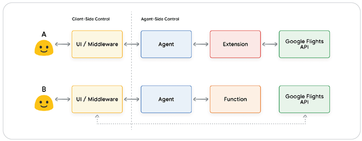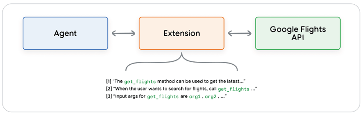 De exemplu, dacă ai creat un agent cu scopul de a ajuta utilizatorii să rezerve zboruri, știi că vrei să folosești API-ul Google Flights pentru a obține informații despre zboruri. Totuși, poate nu ești sigur cum să faci ca agentul tău să apeleze punctul final al acestei API. Extensiile rezolvă această problemă, oferind o modalitate standardizată de integrare între agent și API-uri.